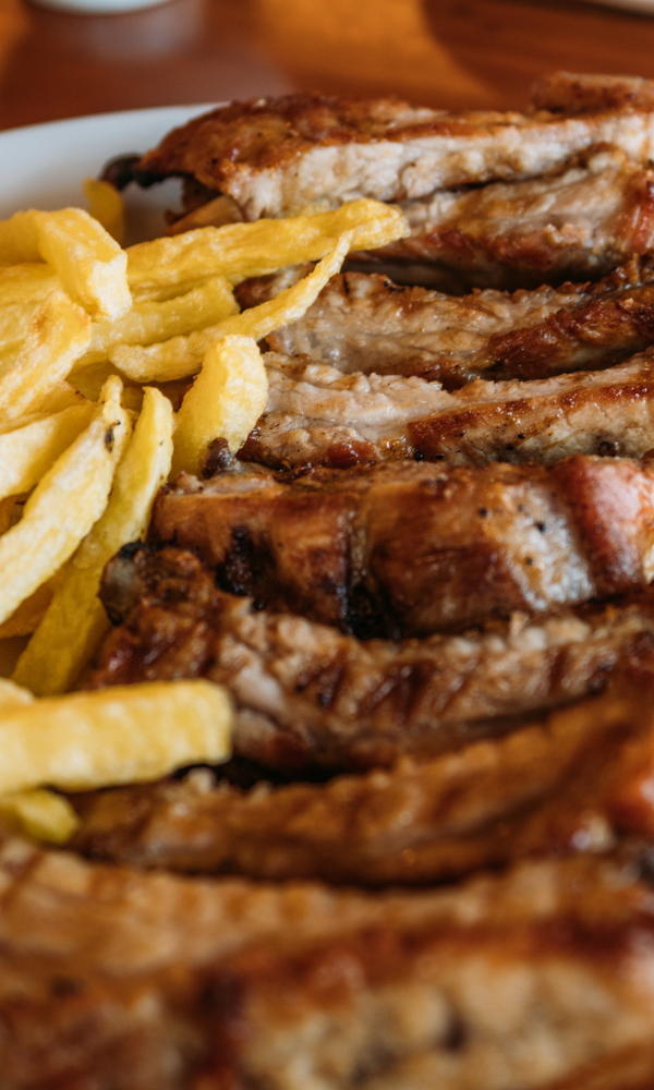 Menú. Carnes- Parrilla Parrillada para CompartirParrillada completa (para compartir) Churrasco de ternera + Churrasco de cerdo + Chorizo criollo + Secreto ibérico 34.00€ Churrasco TerneraCarne 100 por ciento gallega hecha a la parrilla, acompañada de patatas fritas 17.00 € Churrasco De CerdoChurrasco de cerdo 100 por ciento gallega hecha a la parrilla acompañada de su chimichurri hecho en casa 15.50€ Picaña de TerneraCorte jugoso y lleno de sabor, asado a la parrilla en su punto justo para lograr una textura tierna. 17.00€ RACIONES CLÁSICAS GALLEGAS Pulpo á FeiraPulpo á Feira con aceite de oliva virgen extra pimentón y sal gorda 17.00€ RaxoCarne de cerdo salteada acompañada de patatas fritas 12.50€ OrejaOreja al estilo tradicional aliñada con aceite de oliva virgen extra y pimentón 9.50€ Jamón AsadoJamon asado hecho al horno bañado con su salsa y acompañado de patatas fritas 12.00€ Pimientos de PadrónFritos en aceite de oliva virgen extra, salados con sal gruesa 7.90€ Raciones Chipirones FritosChipirones fritos acompañados de patatas y limón 12.20€ Jamón IbéricoJamón de calidad, sabor intenso y textura suave 20.00€ Tortilla españolaHuevos y patatas con aceite de oliva 12.00€ Ensalada MixtaUna mezcla de lechuga fresca, tomate de huerta y cebolla 4.90€ Os Concheiros Postres Caseros Flan Casero 5.20€ Tarta de Queso 5.50€ Queso con Membrillo 5.00€ Coulant con Helado 6.00€ Conoce Más Servicio a domicilio por Just Eat